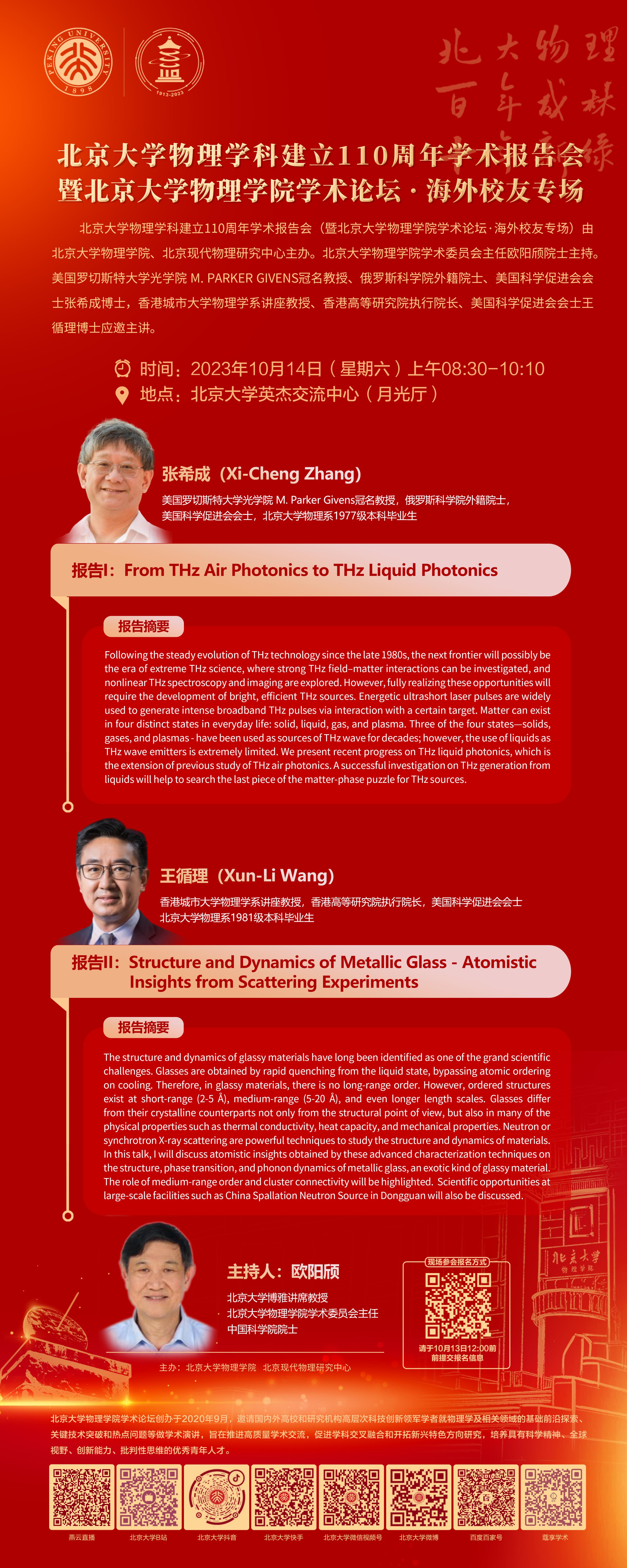 北京大学物理学科建立110周年学术报告会暨北京大学物理学院学术论坛(海外校友专场)